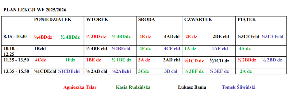 Plan lekcji WF